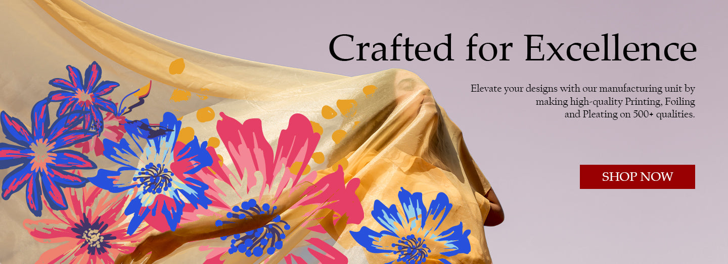 Chanderi Printed pleated fabric